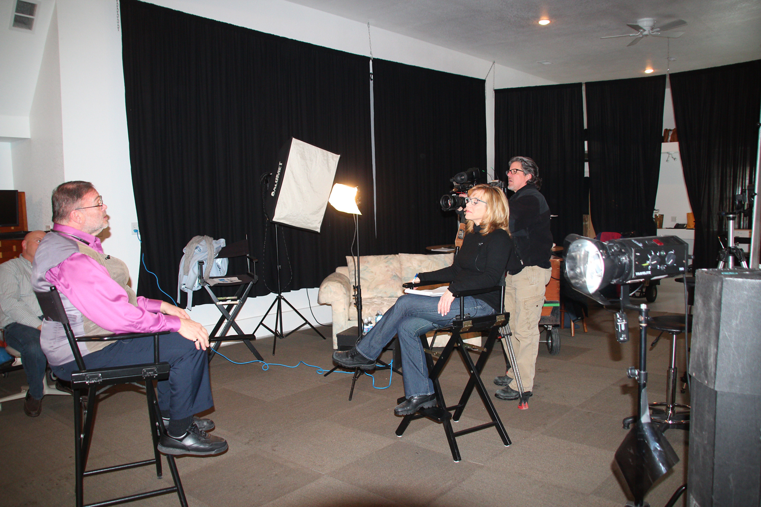 Our private studio features custom lighting and visual setups, perfect for small productions and interview scenes. We have the space and resources to incorporate props that enhance your set and deliver a professional look. From providing sound and camera operators to flying specialized drones indoors, we are equipped to handle every aspect of your production.